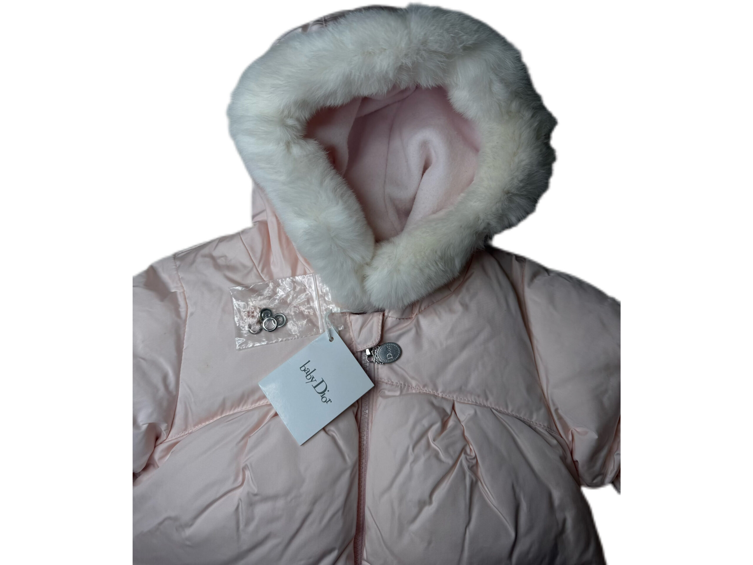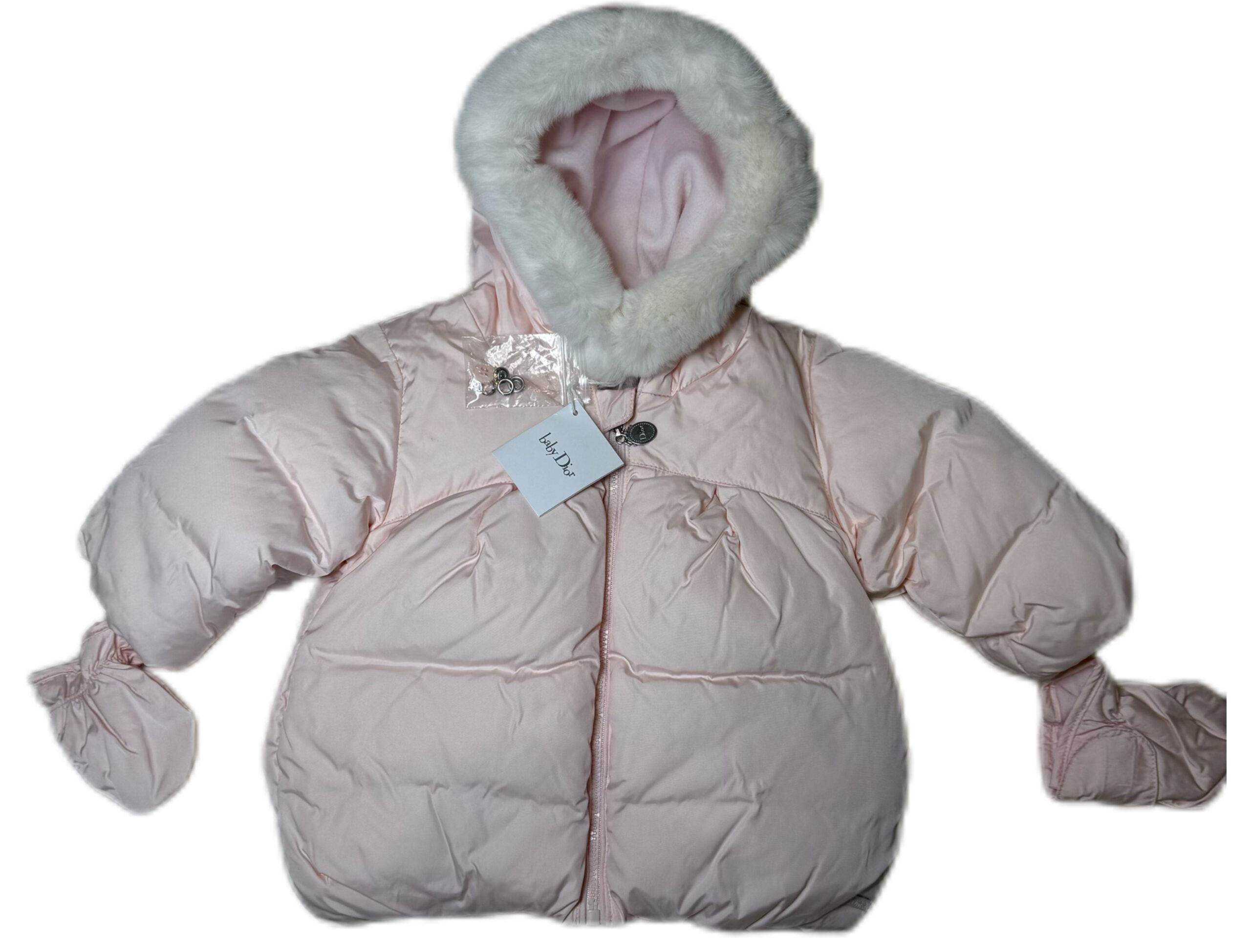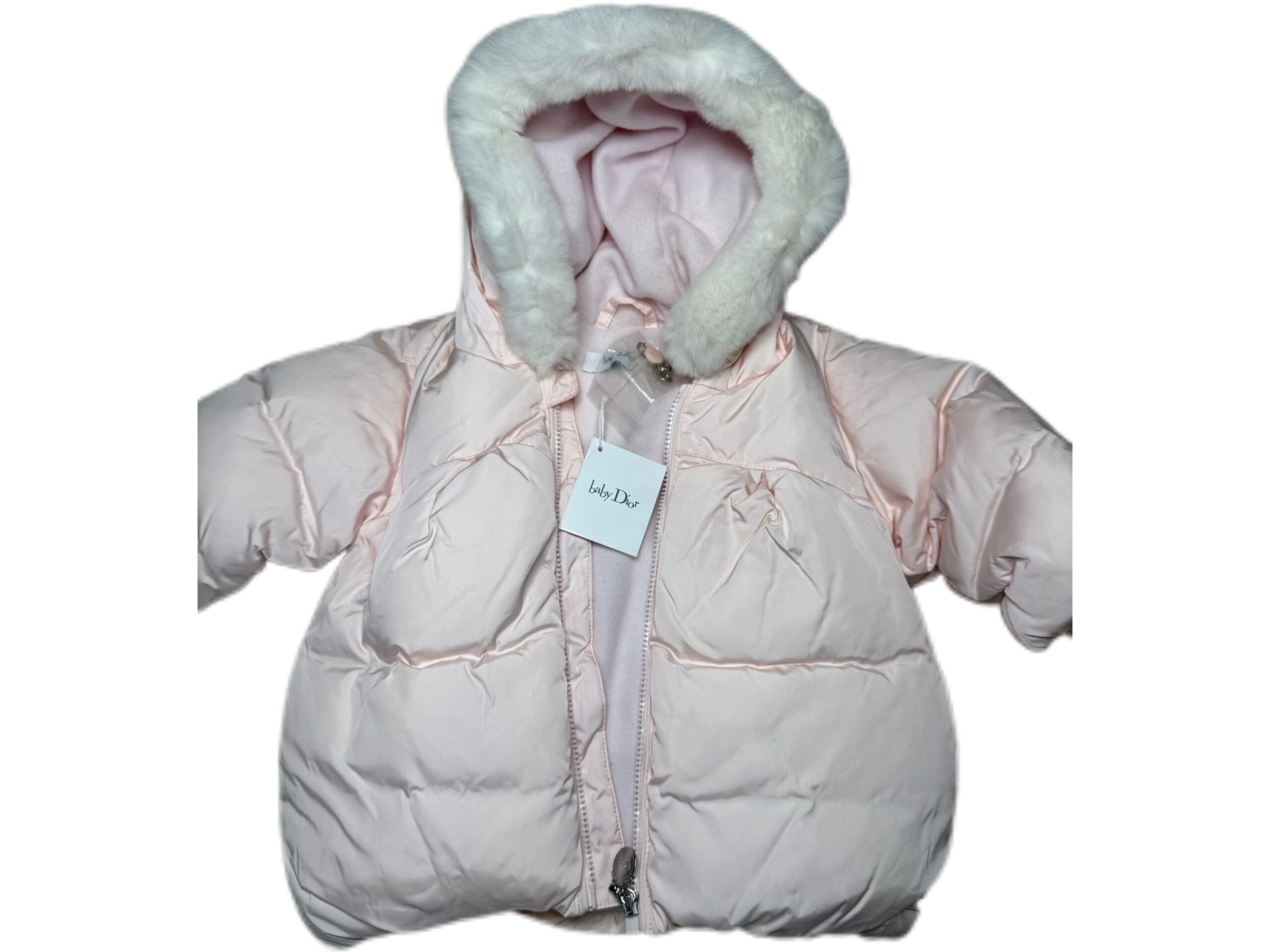 PRODUCT DETAILSBaby Dior Pink Puffer Jacket (6 Months) Wrap your little one in elegance with this Baby Dior pink puffer jacket. Crafted with soft, lightweight padding, it offers cozy warmth while maintaining a refined, girly silhouette. The jacket features a plush faux-fur–trimmed hood, smooth satin-finish fabric, and a full zip for easy dressing. A beautiful blend of comfort and luxury for colder days. Faux-fur trimmed hood Lightly padded and warm Satin-finish exterior Full zip closure