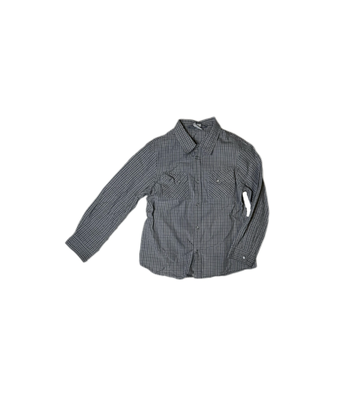 PRODUCT DETAILSA lightweight Bonpoint cotton shirt in a classic grey check pattern. Designed with snap-button closures and double chest pockets, it’s an easy, comfortable piece for everyday styling. 4 years old Soft checked cotton Snap-button fastening Two chest pockets Long sleeves for versatile wear
