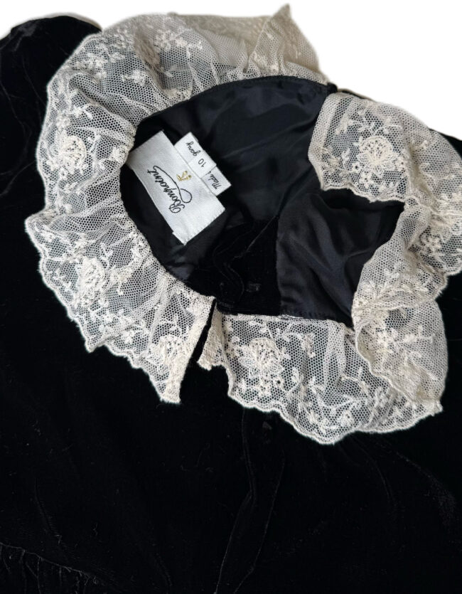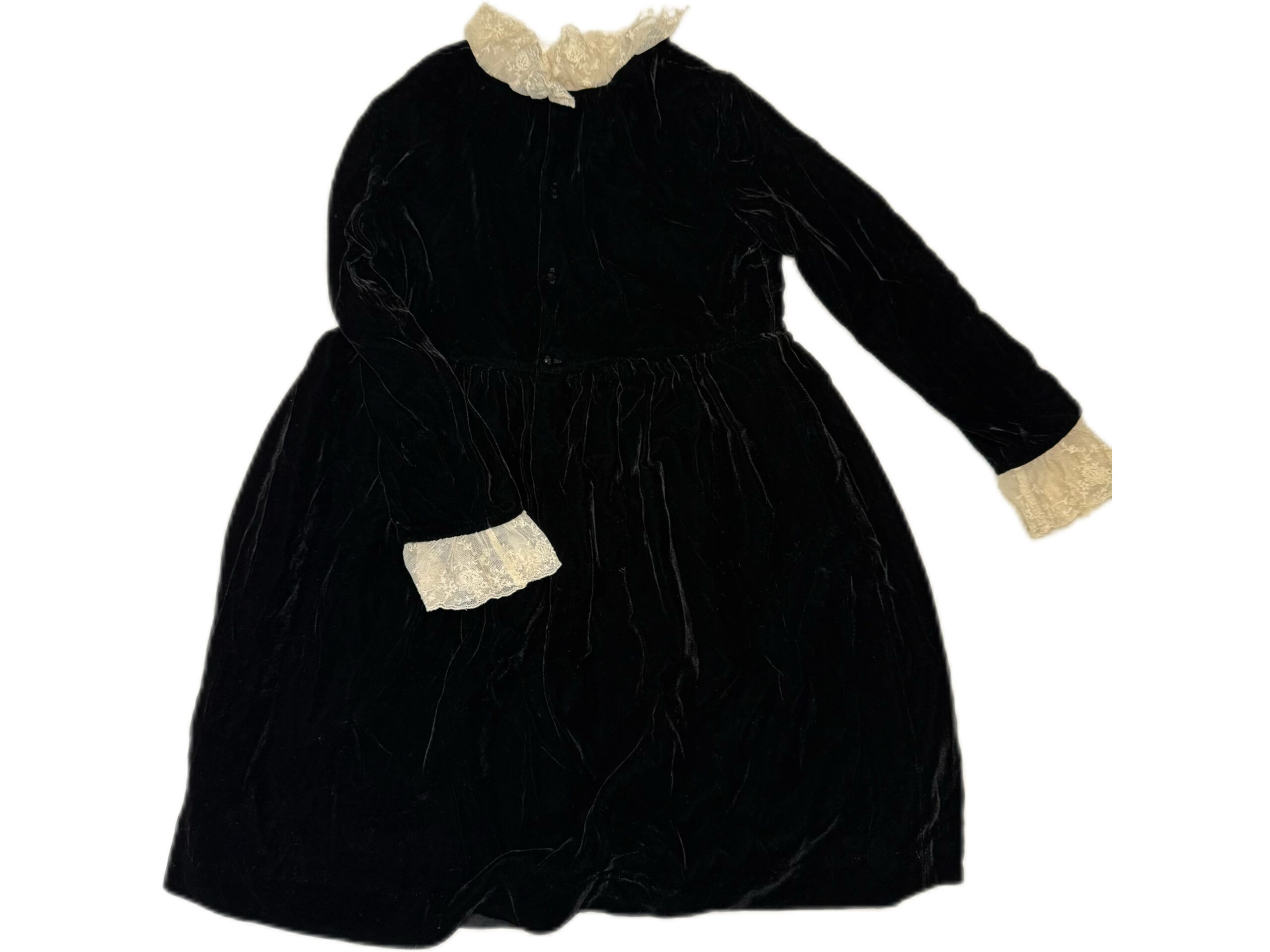 PRODUCT DETAILSA beautifully elegant Bonpoint dress crafted from soft black velvet and finished with delicate lace at the collar and cuffs. Its classic silhouette and refined detailing make it perfect for special occasions and festive moments. 10 years old Soft black velvet Lace-trimmed collar and cuffs Button-back fastening Timeless, sophisticated design