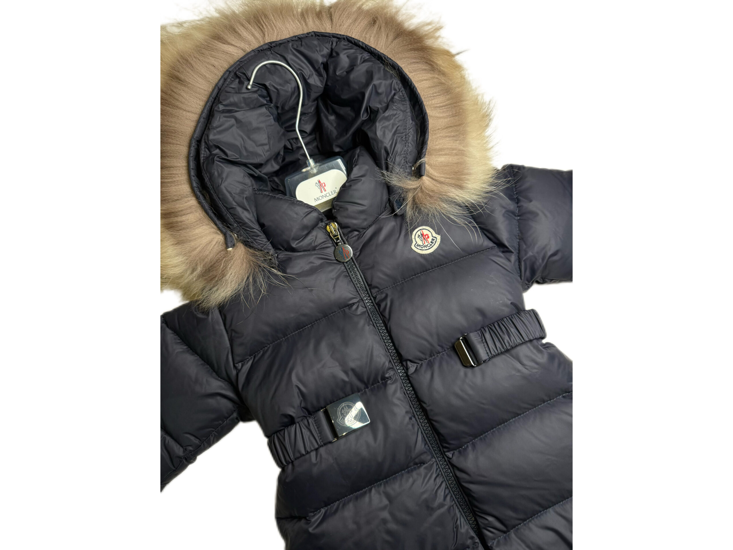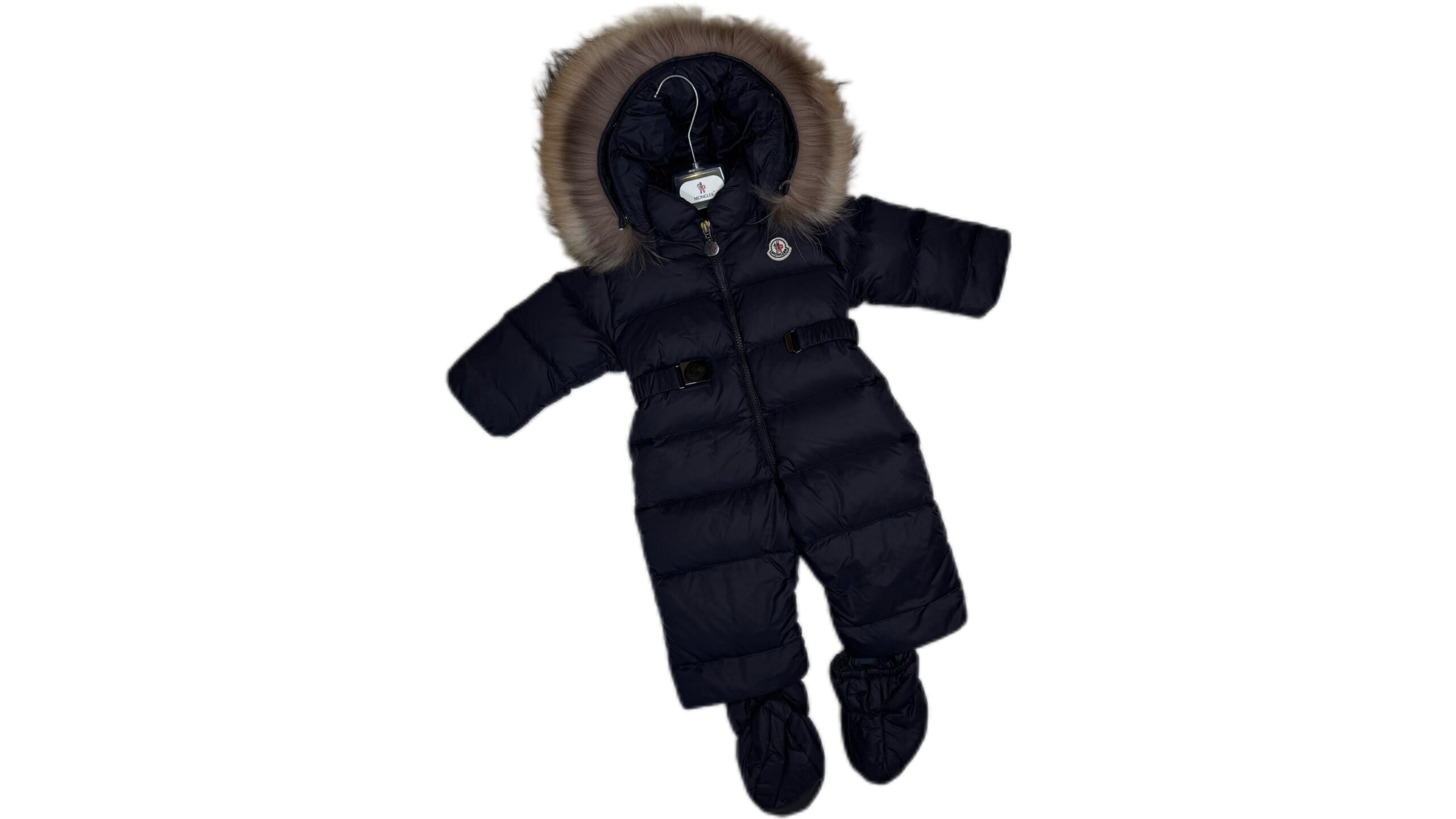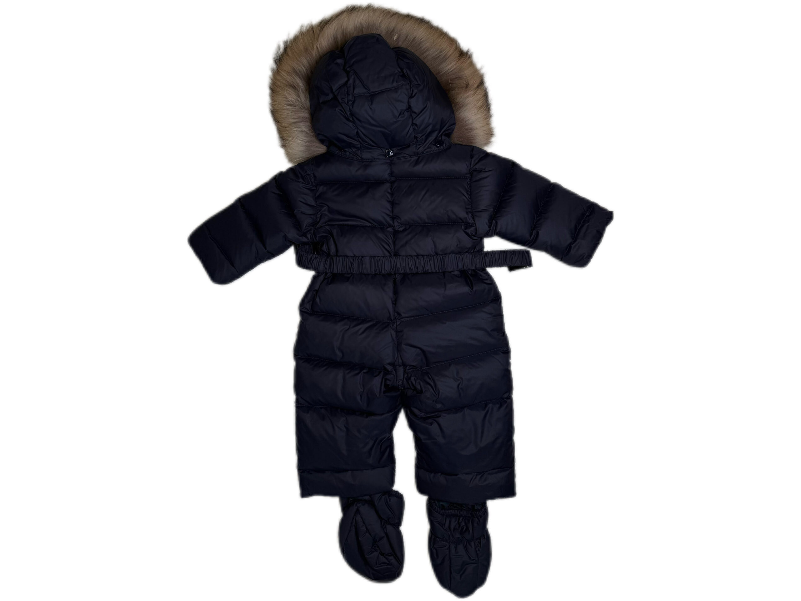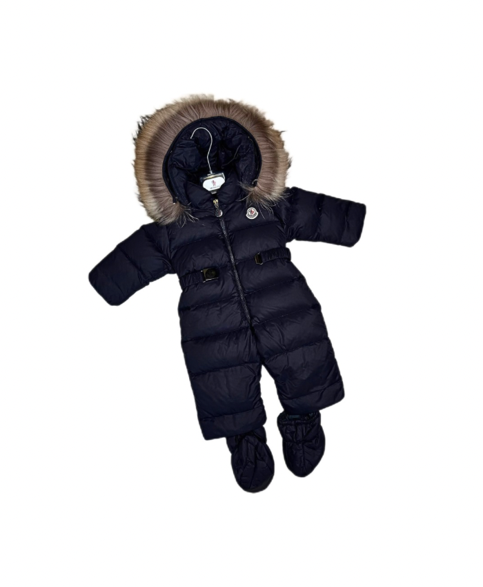 PRODUCT DETAILSMoncler Baby Down Snowsuit with Fur Trim Hood Keep your little one warm and stylish through the coldest months with this luxurious Moncler baby snowsuit. Expertly crafted with premium down padding, this all-in-one design offers exceptional warmth without compromising on comfort or movement. The snowsuit features a soft, quilted shell with a glossy finish, detachable fur-trimmed hood, and secure front zip closure for easy dressing. Elasticated cuffs and matching booties ensure your baby stays snug from head to toe. Finished with Moncler’s signature logo patch and subtle hardware detailing, this piece combines practicality with timeless alpine elegance.