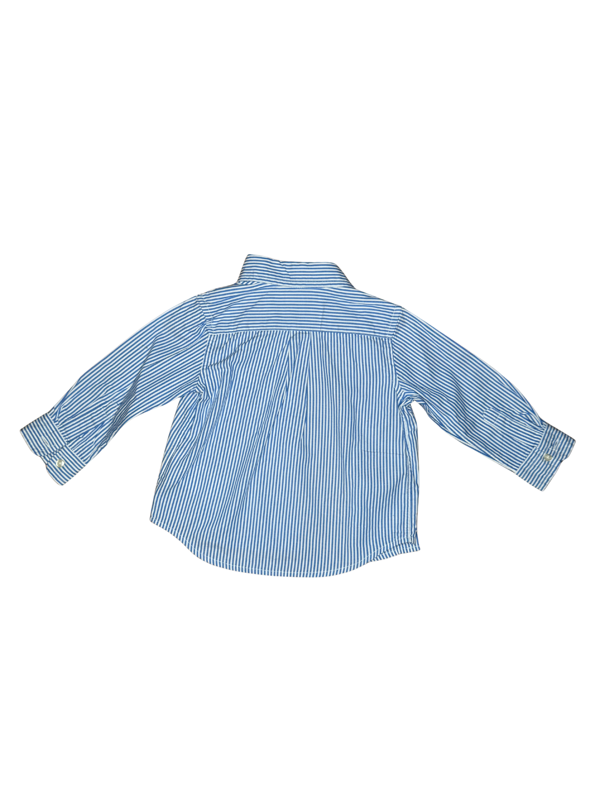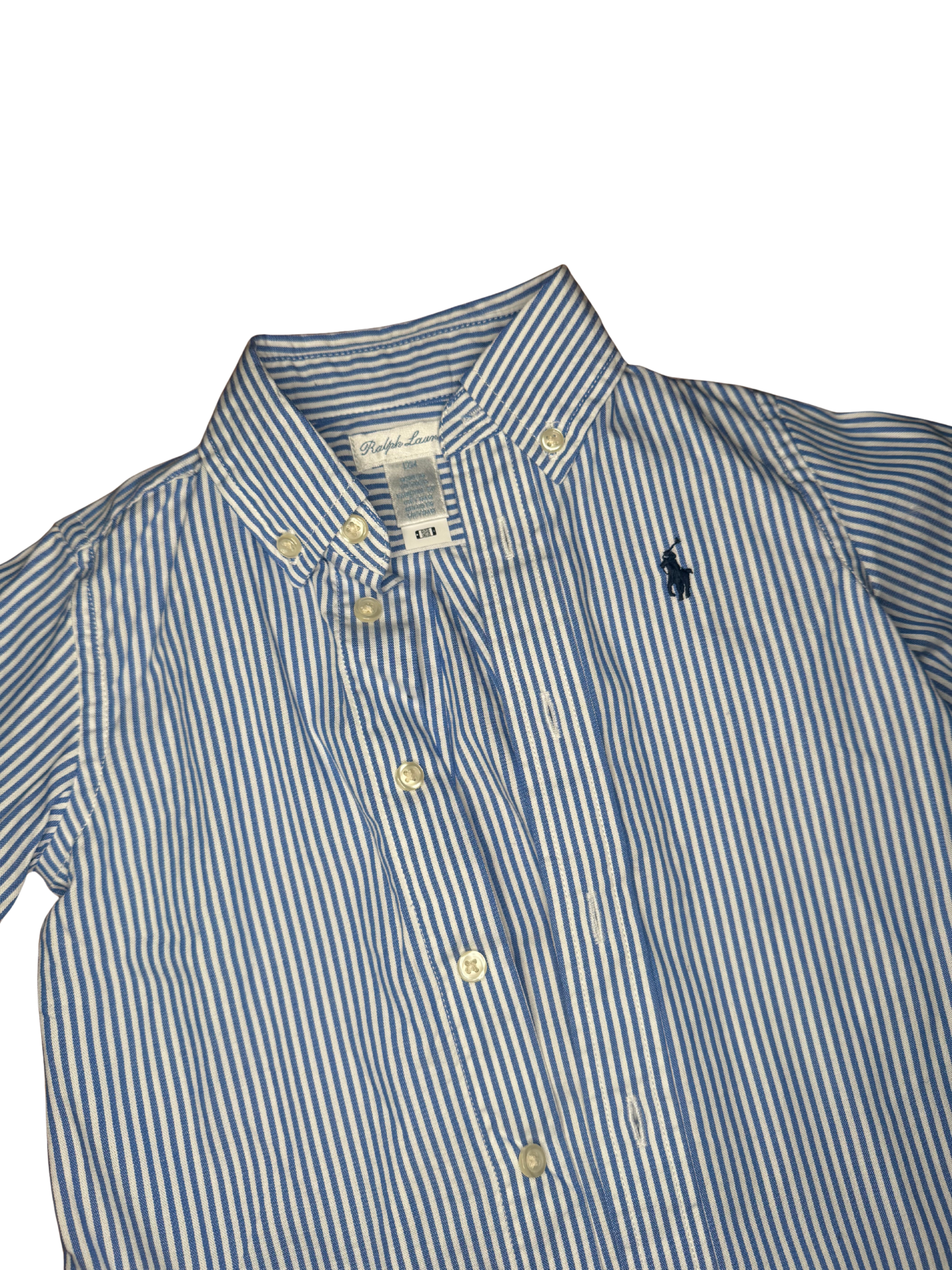 PRODUCT DETAILSSize: 12 Months Color: Blue/White Stripe A classic striped Oxford-style shirt by Ralph Lauren, perfect for polished everyday outfits. • Button-down style • Thin blue & white stripes • RL pony embroidery Material: 100% Cotton
