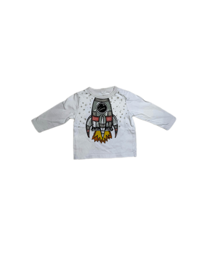 PRODUCT DETAILS6 Months A playful Stella McCartney Kids long-sleeve top featuring a bold, illustrated rocket ship blasting off amid scattered stars. Designed in the brand’s signature whimsical, hand-drawn style, this piece is made from soft, eco-friendly cotton for all-day comfort. A fun, imaginative essential for little space explorers.