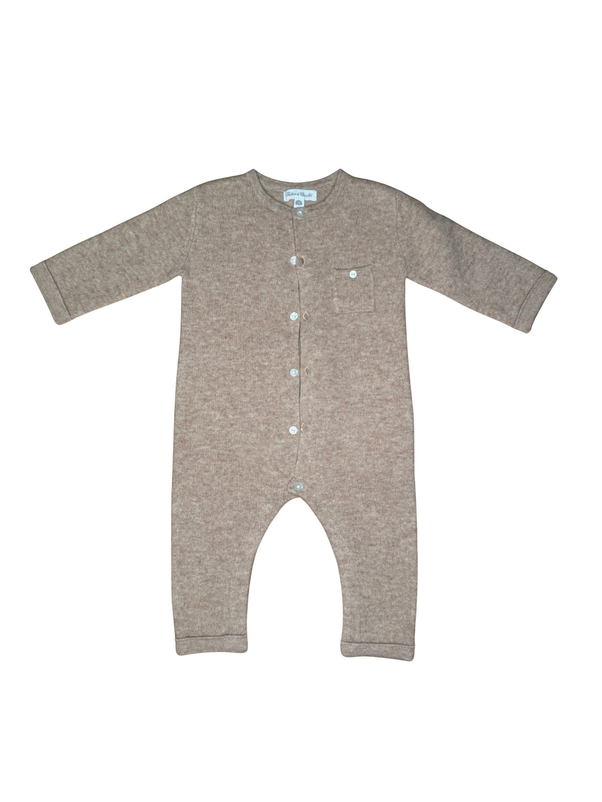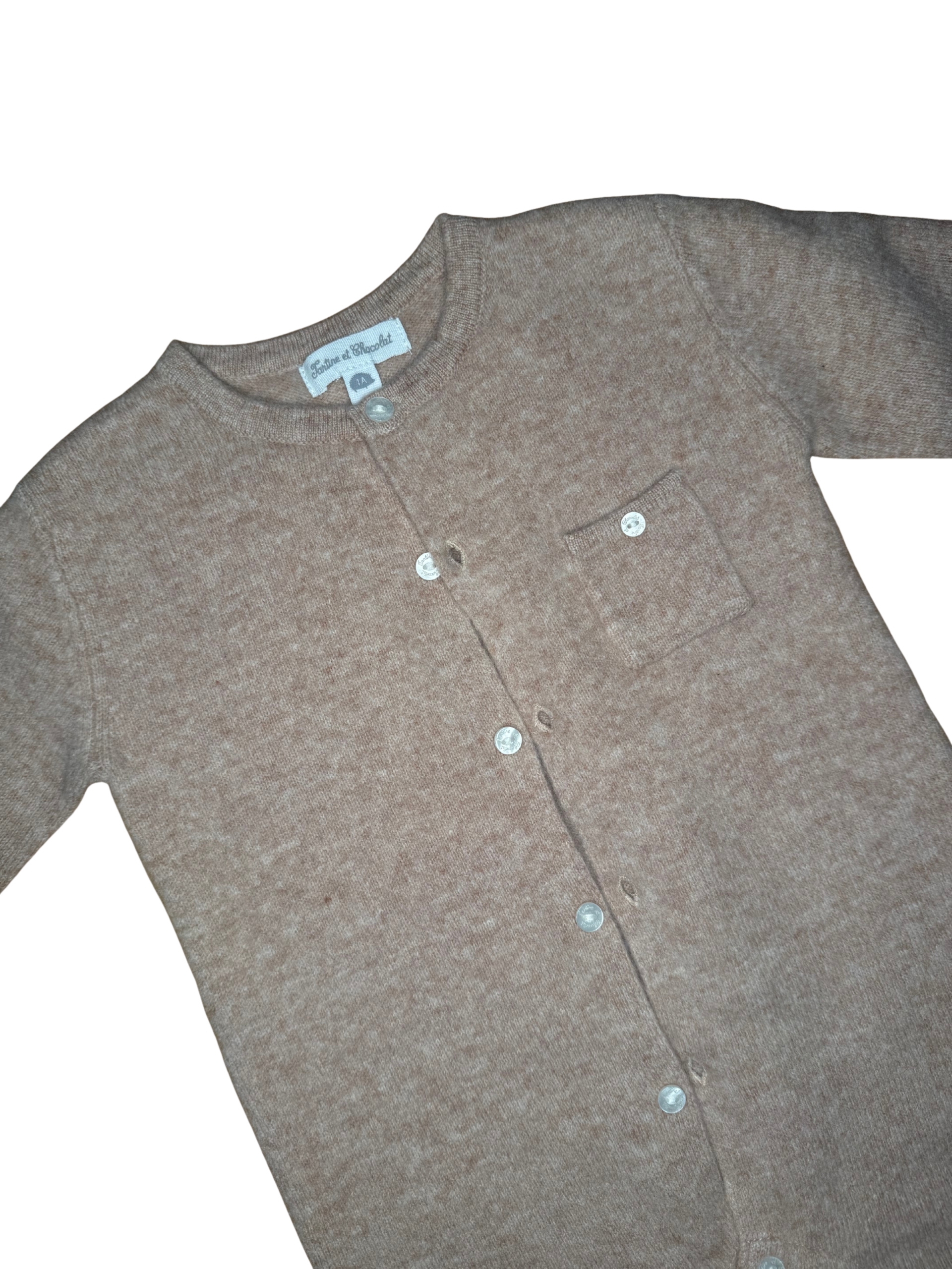 PRODUCT DETAILSSize: 1 Year Color: Neutral knit A beautifully knitted romper designed with Tartine et Chocolat’s signature refined detailing. Soft, breathable, and perfect for special occasions or everyday elegance. • Fine-gauge knit • Delicate TG detailing • Soft and gentle on skin Material: Wool/cotton blend